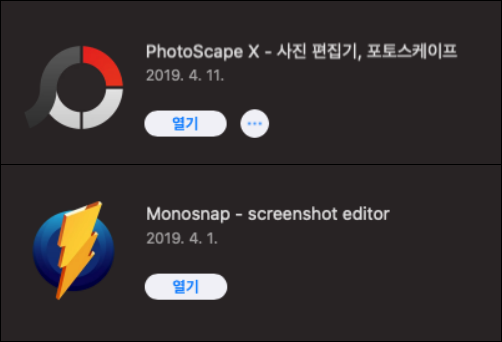 맥 앱스토어에서 포토스케이프와 모노스냅을 설치하면 된다.